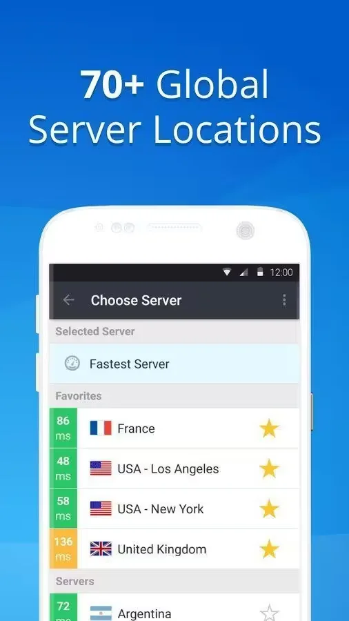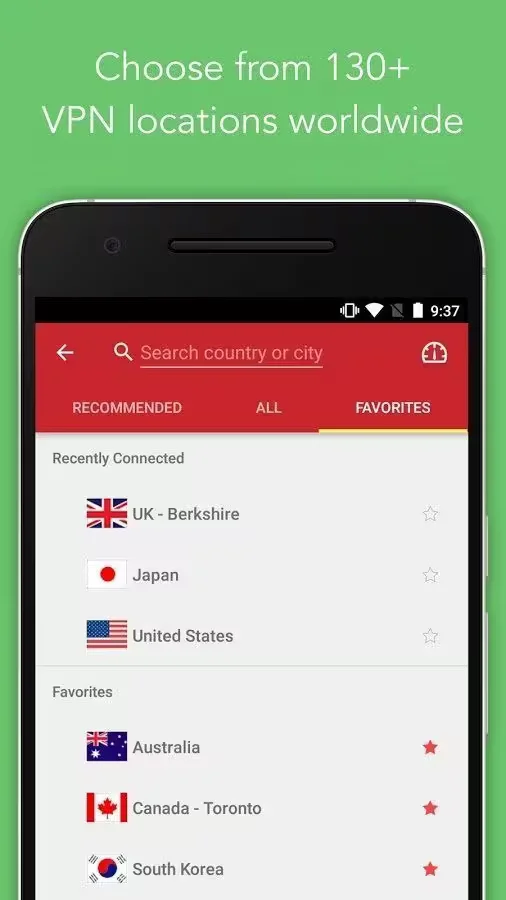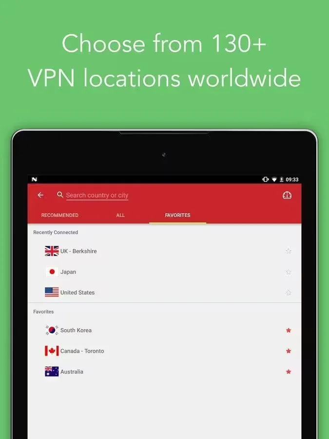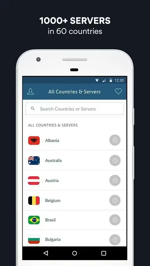 This service has more than 750 servers spread across 141 countries, and it has a self-managed network, so there are no third-parties involved. It supports 256-bit encryption, offers round-the-clock support, and boasts a zero logging policy for your online activities. You can also have five simultaneous connections on different devices. The Android app is easy to use. You can browse based on your country of choice, simply tap to join a server, or just pick the fastest server available.