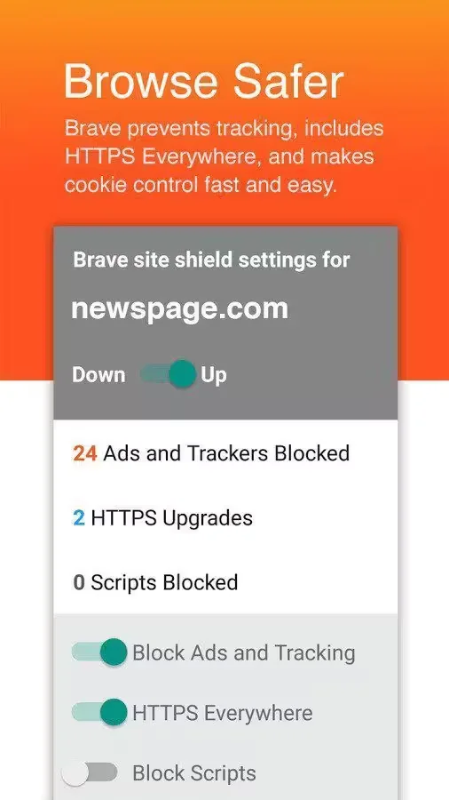 The browser reduces page loading time, improves performance, and guards from ads infected with malware. Brave shows a 2x to 4x speed increase on Android, so you will see a direct reduction in both battery and data plan consumption. Brave also protects users with leading privacy and security features such as HTTPS Everywhere (encrypted data traffic), script blocking, 3rd party cookie blocking, and private incognito tabs.