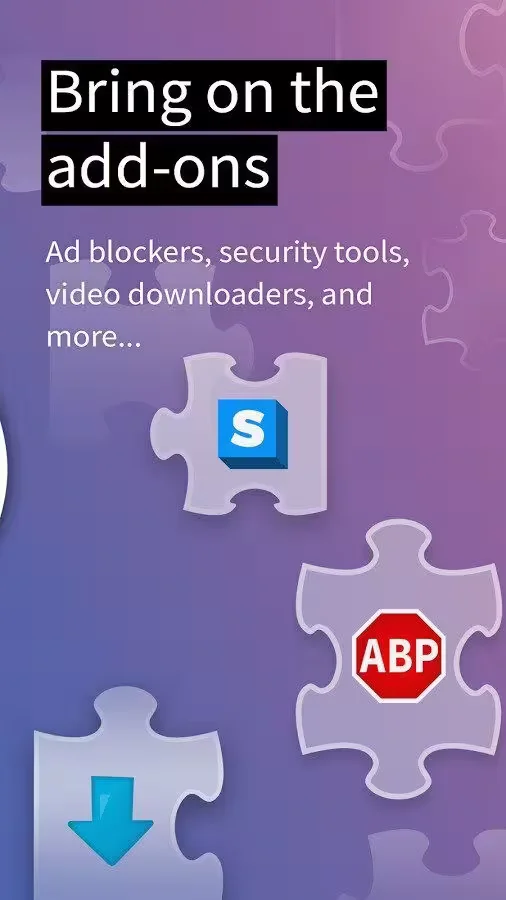 - Browser store for installing web apps and add-ons.