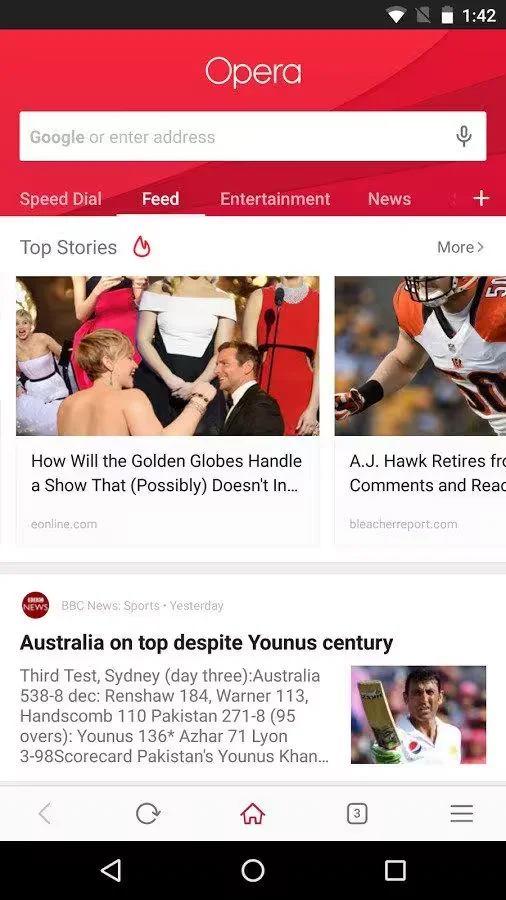 The most recent version has a built-in ad blocker which, as you might expect, blocks pop-ups, interstitials, and banner ads you would otherwise encounter on any given website. Opera’s new search bar supports the standard array of queries — i.e., the web, pic, video searches — but also supports QR code scanning.