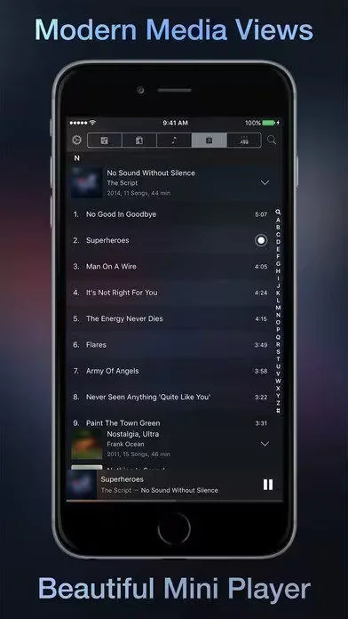 This is another free music player for iPhone that has a lot of cool features not available in other apps. Jet Audio automatically hooks into your music library, including songs that are in your iCloud Music Library, and is ready to go the moment you launch it. It also has a dark interface.