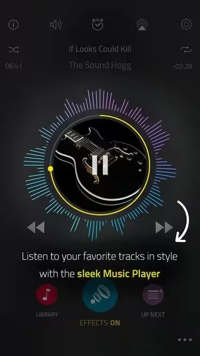 The Now Playing view has some great options on the top of the screen, including things like an equalizer, customizable sound effects, as well as a sleep timer so that you can set your music to stop automatically after a particular amount of time.