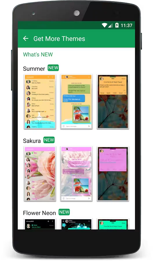You can choose from hundreds of free themes to personalize your messaging experience and some of the features include scheduled SMS sending, group MMS, delayed messages, pinning favorite conversations to the top, blocking certain numbers and sending quick replies.