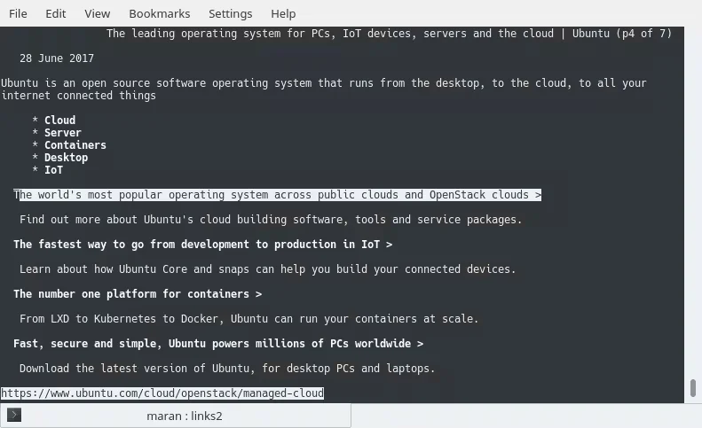 This is ideal browser for those who want to experience GUI elements in a text-only environment. Links 2 being the latest version was released in September 2015 and it is an advanced version of Links which supports JavaScript which results in a much fast web browser.