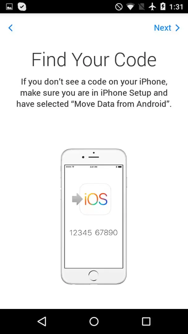 When moving from an Android device to an iPhone, iPad, or iPod touch with iOS 9, the setup process now prompts new users to move data from Android if switching platforms. To complete this process, the setup process on iOS will offer a code that you have to enter into “Move to iOS” for matching up the devices.