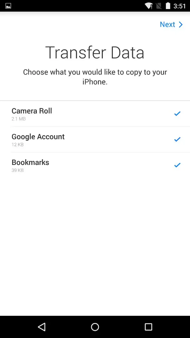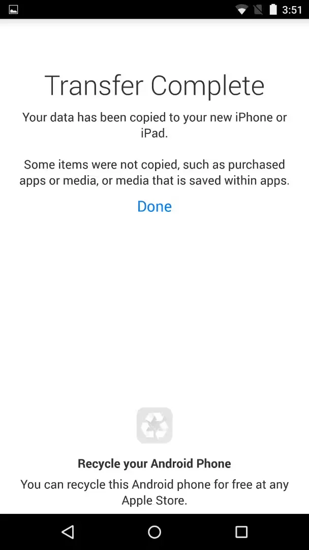 The “Move to iOS” app will ask you to select which supported types of content you wish to transfer from your Android device to your iPhone or iPad. Once you complete the selection process, the app creates a private Wi-Fi network used by both devices to transfer content. After the transfer process is complete, the app will notify you if any content was not able to move to your new iPhone or iPad, and then recommend recycling your old Android phone at a local Apple Store. After continuing the setup process on the iPhone or iPad, the settings and content should appear intact.