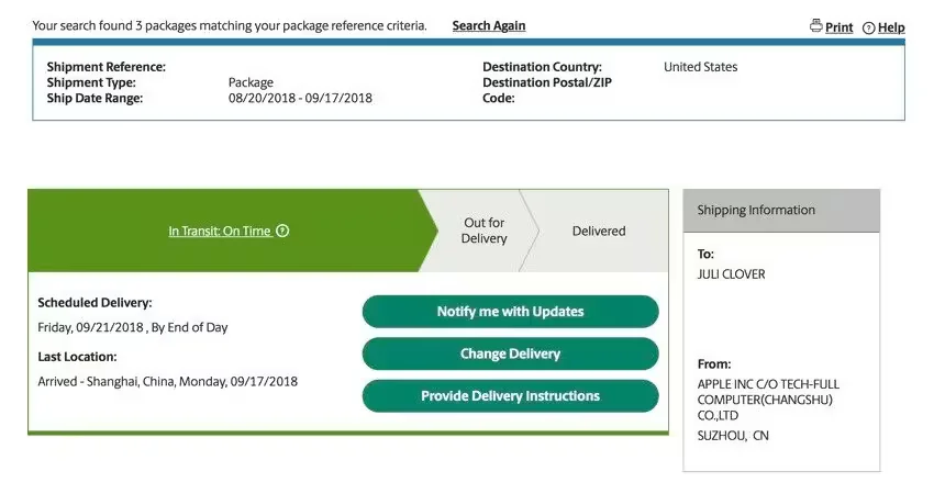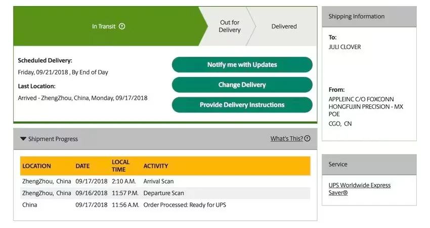 The above trick might not work for all customers in the United States who pre-ordered the iPhone XS, iPhone XS Max, or the Apple Watch Series 4 as Apple/UPS servers might not have been updated with the required information. Moreover, most orders right now are still in various parts of China but should be departing for the United States and other countries in the near future.