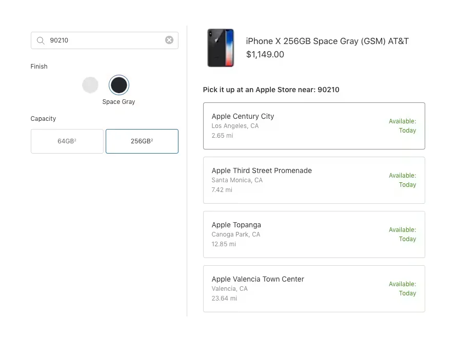 To check for the availability of iPhone X, simply visit the iPhone X purchase page for your country, select a carrier if required, choose a color, and then click on “Pickup: Check Availability” below your desired storage capacity. A window will pop open with iPhone X availability at nearby Apple stores based on your ZIP or postal code. Currently, you can availability for the following countries; Australia, Belgium, Canada, France, Germany, Italy, Mexico, The Netherlands, Spain, Sweden, Switzerland, United Arab Emirates, United Kingdom, United States.