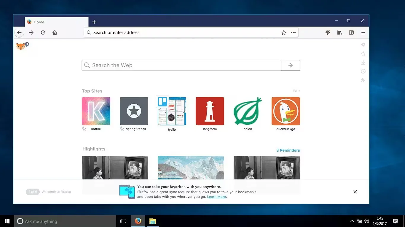 A new action menu, referred to as an “arrow panel” on the Mozilla bug tracker, is also accessible from the Awesome Bar/URL bar. This “arrow panel” offers additional page actions, including bookmarking via Pocket, email, share and more. You might have noticed that the new tab/start page is looking a little different too.