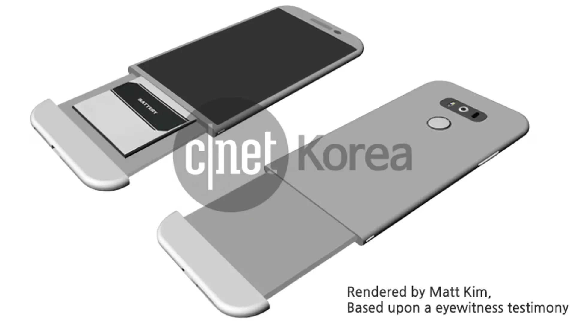 According to a report from CNet Korea, LG is designing G5 with a full metal body but with a semi-modular design for removing and replacing the battery. The G5 battery can be removed simply by taking out the detachable bottom edge of the phone, as you can see in the concept render below.
